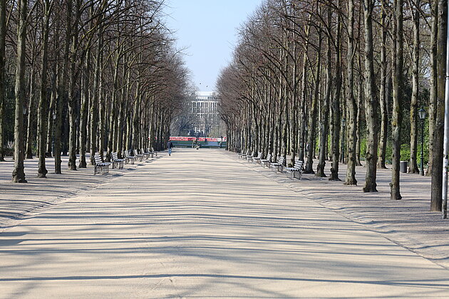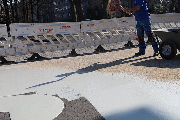 Die Vielfalt der Aufgaben zeigt unser großes Leistungsspektrum: Auf der großen Freifläche vor dem Schauspielhaus wurde EP-GRIP URBAN zur Gestaltung des Gustav-Gründgens-Platzes eingesetzt. Im angrenzenden Hofgarten wurden die dunklen, asphaltierten Hauptwege durch unsere Beschichtung naturnah verschönert, zudem unterstützt diese aktiv den Albedoeffekt. Ein Highlight war die Beschichtung der Gehwege auf einer städtebaulichen Innovation ‒ der begehbaren "Dreieckswiese". Hier kommen die Sicherheitsvorteile von EP-GRIP URBAN besonders zum Tragen, denn bis zur Spitze der Dreieckswiese ist eine Steigung von ca. 20 Grad zu bewältigen.