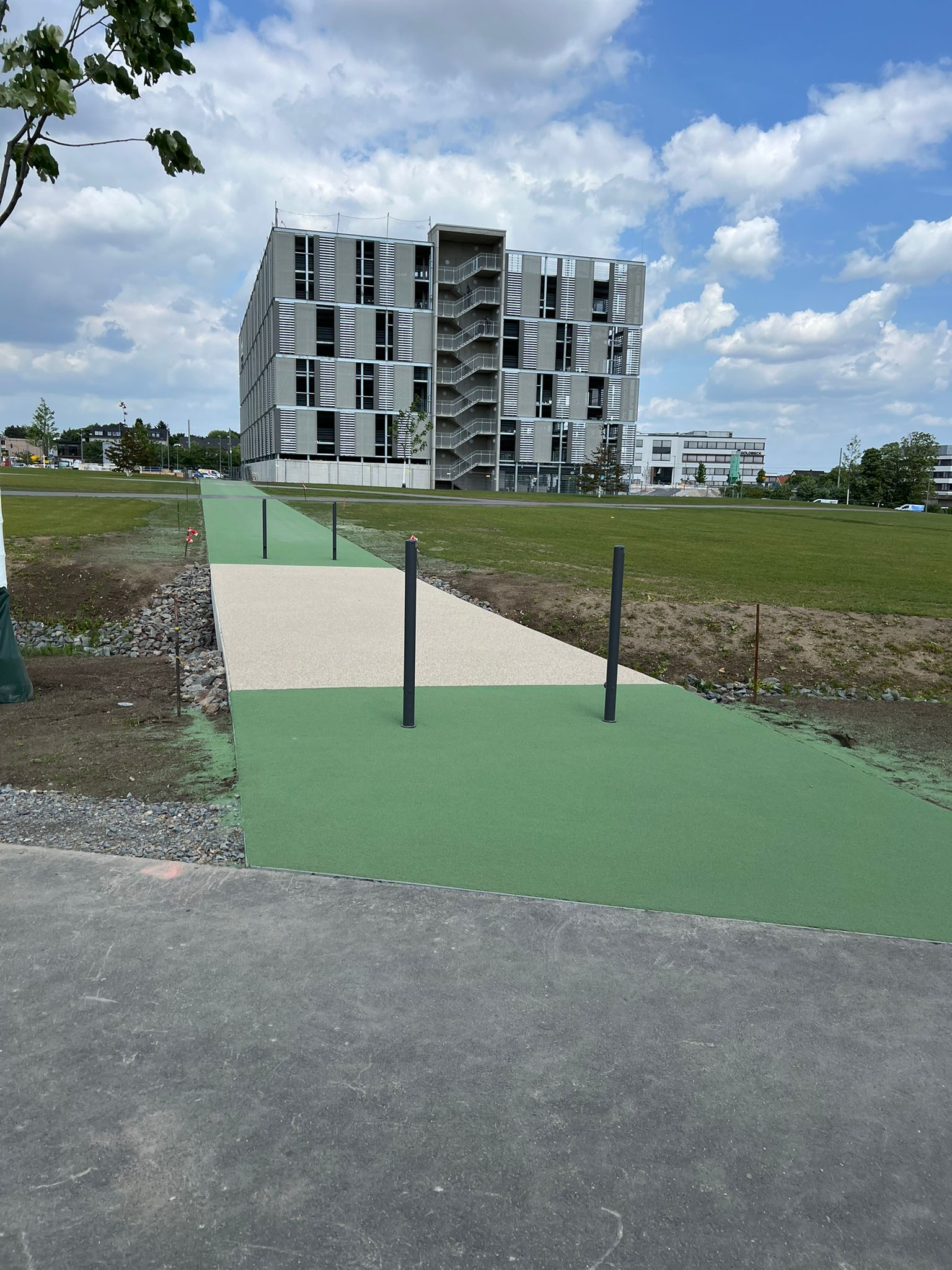 MARK 51°7 is one of the flagship projects of the city of Bochum. Located close to several universities, this new district combines top-tier infrastructure, a powerful network and access to a large market. One of the park areas on the 70-hectare site was coated by our team using EP-GRIP URBAN – providing a safe, slip-resistant and vibrant green surface.
