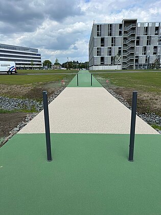 Das Innovationsquartier 51°7 gehört zu den Vorzeigeprojekten der Stadt Bochum. In unmittelbarer Nähe zu den Hochschulen entsteht ein Viertel, das erstklassige Infrastruktur, ein leistungsfähiges Netzwerk und einen riesigen Absatzmarkt vereint. Eine der Parkanlagen des 70 ha großen Geländes durften wir mit EP-GRIP URBAN sicher, rutschfest und in einem strahlenden Grün gestalten.