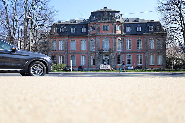 Die Vielfalt der Aufgaben zeigt unser großes Leistungsspektrum: Auf der großen Freifläche vor dem Schauspielhaus wurde EP-GRIP URBAN zur Gestaltung des Gustav-Gründgens-Platzes eingesetzt. Im angrenzenden Hofgarten wurden die dunklen, asphaltierten Hauptwege durch unsere Beschichtung naturnah verschönert, zudem unterstützt diese aktiv den Albedoeffekt. Ein Highlight war die Beschichtung der Gehwege auf einer städtebaulichen Innovation ‒ der begehbaren "Dreieckswiese". Hier kommen die Sicherheitsvorteile von EP-GRIP URBAN besonders zum Tragen, denn bis zur Spitze der Dreieckswiese ist eine Steigung von ca. 20 Grad zu bewältigen.
