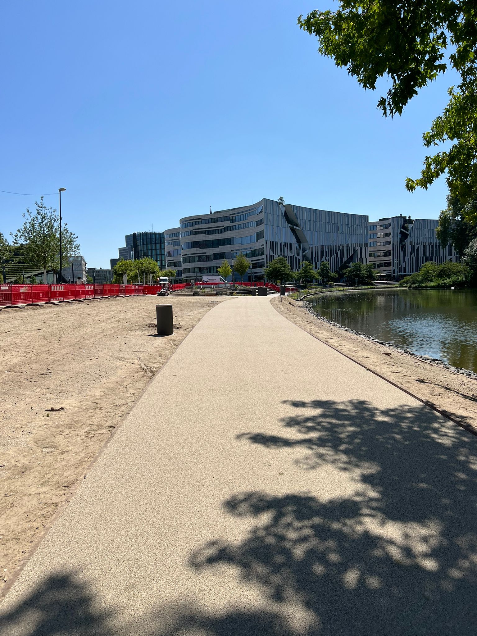Kaum ein anderes Quartier hat in Düsseldorf so viel Prestige wie der Kö-Bogen. Die Architektur ist einmalig: Sie verbindet Moderne mit Natur, Unternehmertum mit Kultur, Erholung mit Stadtleben. Im Zuge der Fertigstellung des Kö-Bogens erneuerte die Stadt auch den Opernplatz, die Hofgartenpromenade und angrenzende Parkwege. Letztere durften wir nun ebenfalls mit EP-GRIP URBAN neu gestalten.