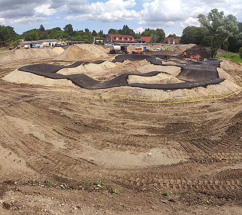 Noch ist der Bikepark durch den Bau nicht wirklich "grün". Doch schon bald werden die ersten Fahrräder über die frische Piste rollen können und den neuen Stadtpark mit Leben füllen. Wir wünschen viel Spaß und unfallfreie Fahrten.