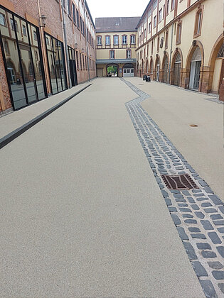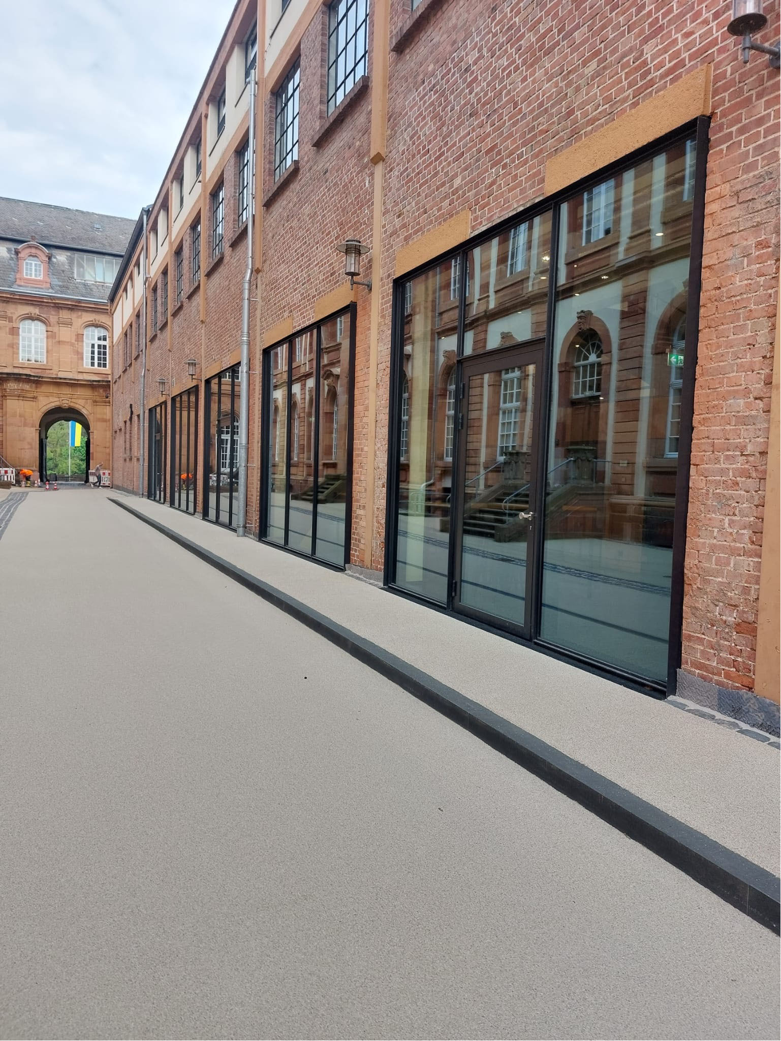 Die Wahl fiel auf unsere hochwertige Beschichtung EP-GRIP URBAN, die mit Euroquarz Siligran abgestreut wurde. Das oberste Ziel des Projektes war es, die Fläche denkmalpflegerisch aufzubereiten und dabei die Authentizität des Ortes zu bewahren. Das Quarz, das aus unserer eigenen Firmengruppe stammt und damit die Stärke der POSSEHL Gruppe zeigt, überzeugt mit seiner hohen Ästhetik. Die Fläche, die öffentlich zugänglich ist und an ein Museum, verschiedene Ausstellungen sowie ein Café grenzt, fügt sich perfekt in den historischen Charakter der Umgebung ein.